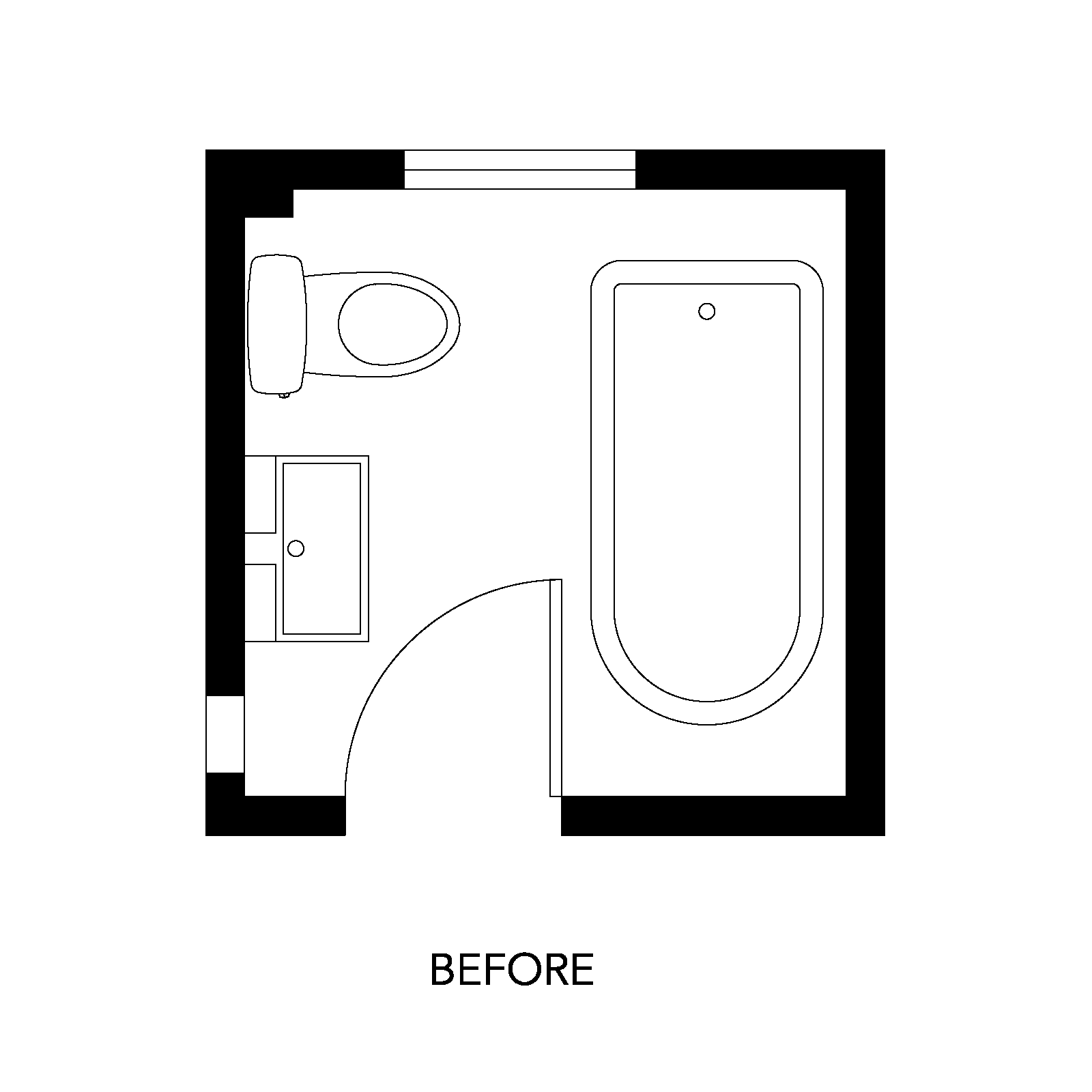 The upper-level bathroom in this 1903 Victorian was incredibly tight on space and was challenged by a clawfoot tub and a swing door that barely allowed passage into the room.