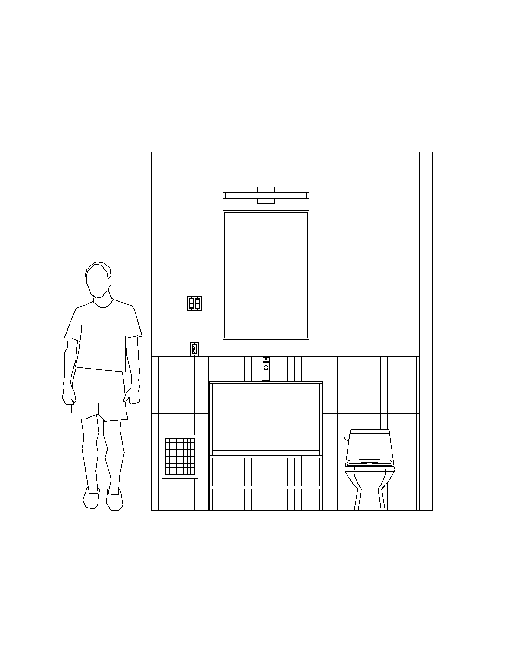 The new design features a pocket door (created from the original), an efficient yet luxurious walk-in shower, and a compact freestanding vanity. Classic black hex tile floors and white subway tile walls speak to the historical era of the home, while scale and arrangement take things in a modern direction. The tri-color “plume” feature wall in the shower is a nod to Victorian ornamentation.