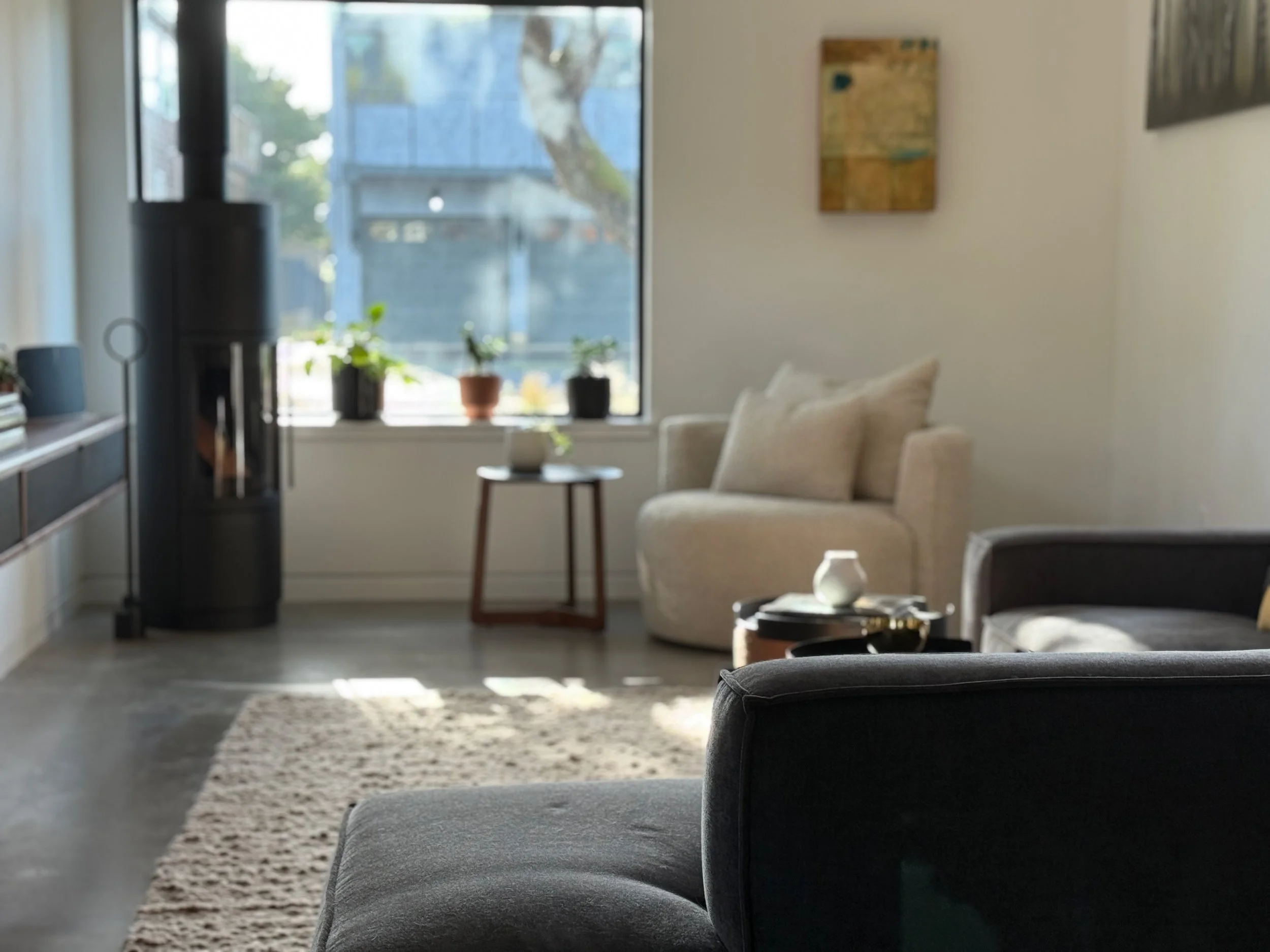 After nearly two years of planning and construction, the owners of this modern Oregon coast home invited us to help complete the interiors with furnishings that would bring their vision fully to life. Guided by an “inside out” design philosophy, the goal was to create spaces that feel calm, grounded, and deeply connected to the surrounding landscape.